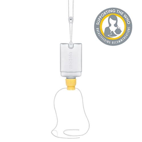Le dispositif d’aide à l’allaitement de MEDELA permet à certaines femmes d’allaiter leur bébé au sein.